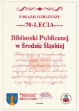 DZIĘKUJEMY WSZYSTKIM GOŚCIOM ZA WSPÓLNE ŚWIĘTOWANIE 70-LECIA BIBLIOTEKI PUBLICZNEJDZIĘKUJEMY ZA WSPÓLNE ŚWIĘTOWANIE